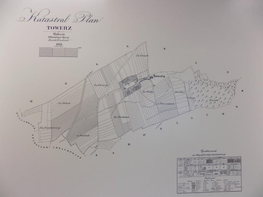 Historická mapa obce Tovéř z roku 1834